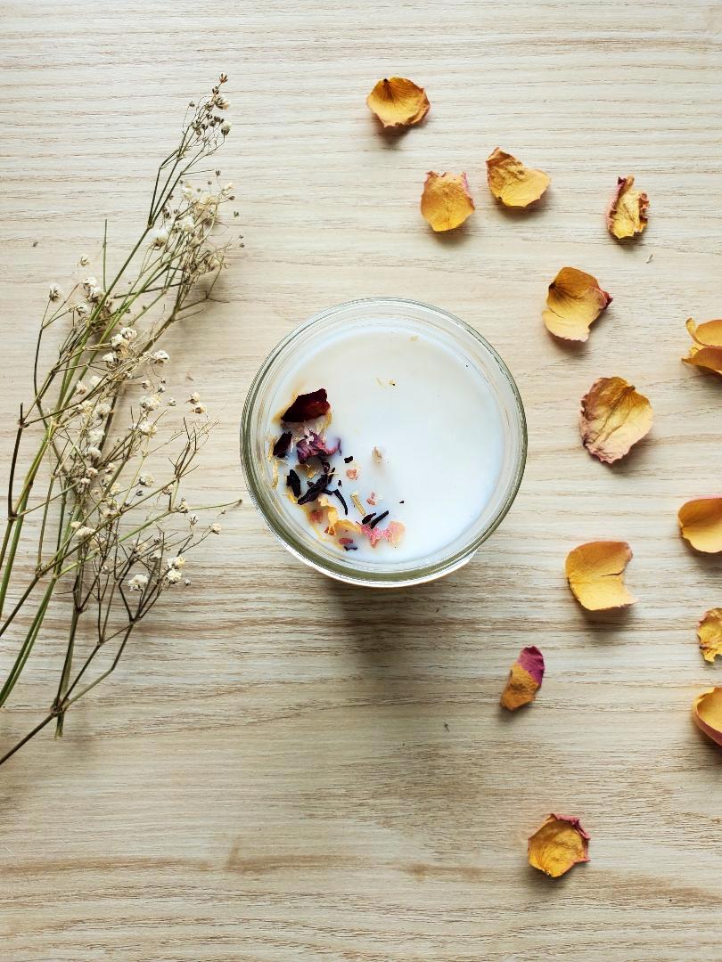 Ingrédients : Cire de soya 100% naturelle coulée à la main, fragrances & huiles essentielles naturelles, fleurs séchées et mèche de coton. Écoresponsable & pet friendly. Sans phtalates, sans parabènes.